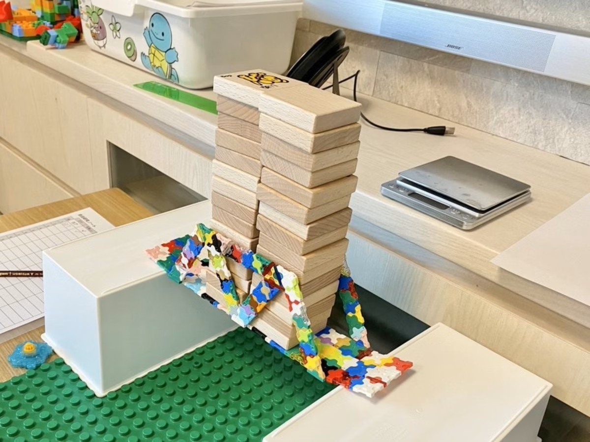 いもす(@imos)さんの小1の息子さんのエピソードです。小学生になり初めての自由研究で「つよいはしをつくる」をテーマにしたという息子さん。1kgの重さに耐えられる橋を、LaQというブロックを使って作ることにしたそうです。ところが、最初に作った橋が、すでに想像を超えてくるものだったそう。