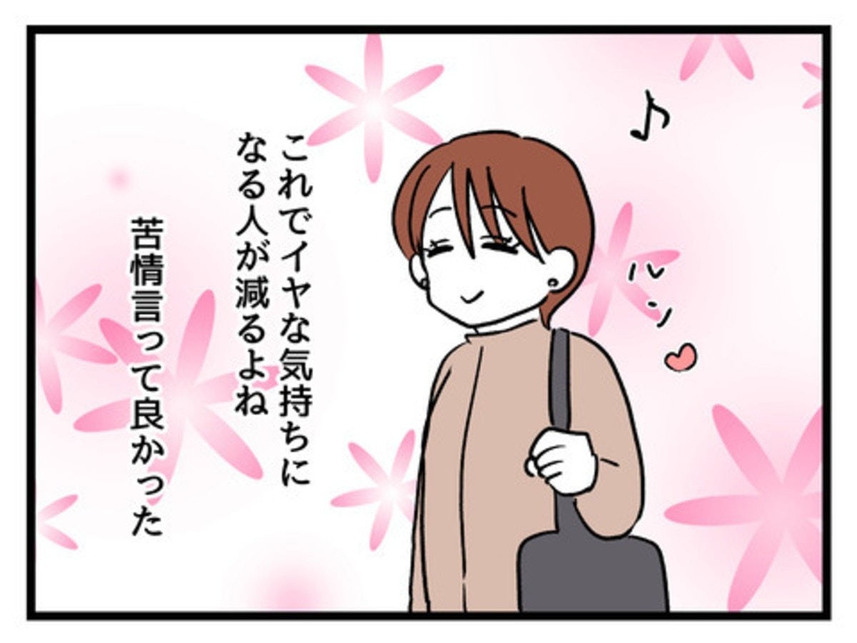 キリコが広告を設置している会社にクレームを入れたことで、不妊治療クリニック前の看板はファミリー向け保険のものから歯科クリニックの広告へ変わりました。キリコは自分が周囲に意見をすることで、世界が「自分に対して配慮のある社会」になっていくのが心地よく思えていました。