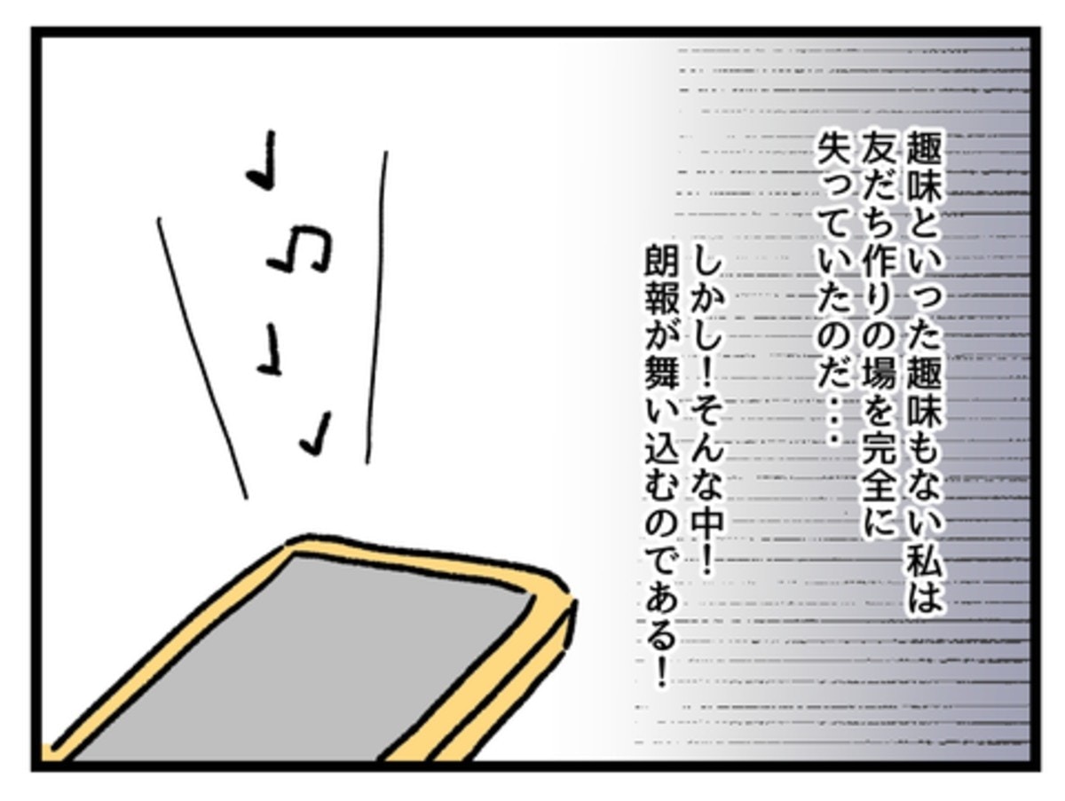 事務員としてフルタイムで働いているので職場はありますが、同僚にも友人という感じの人はおらず、子どもが通う保育園にも親しくできる保護者はいません。はるかの現在の悩みは、居住エリアに友だちがいないことなのでした…。
