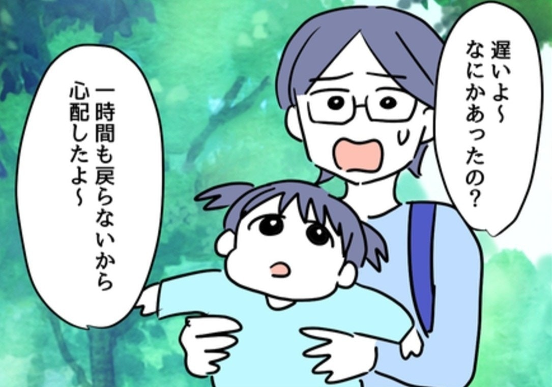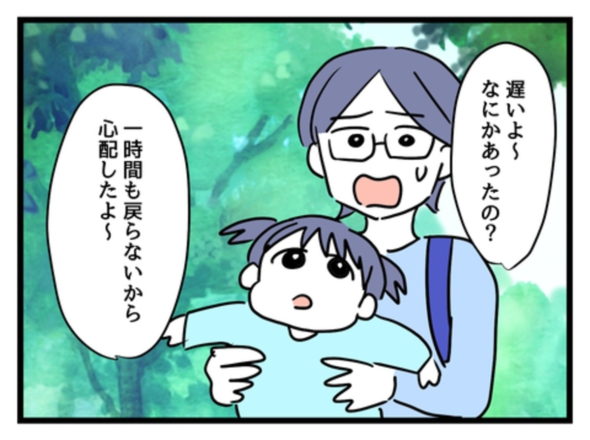 水筒を忘れ、自宅に取りに戻ったりささん。ゆかりさんはその行動にも「え?」と思っていましたが、それ以上にびっくりしたのは連絡をスルーしたあげく、自分たちだけお昼ご飯を食べて公園に戻って来たことでした。