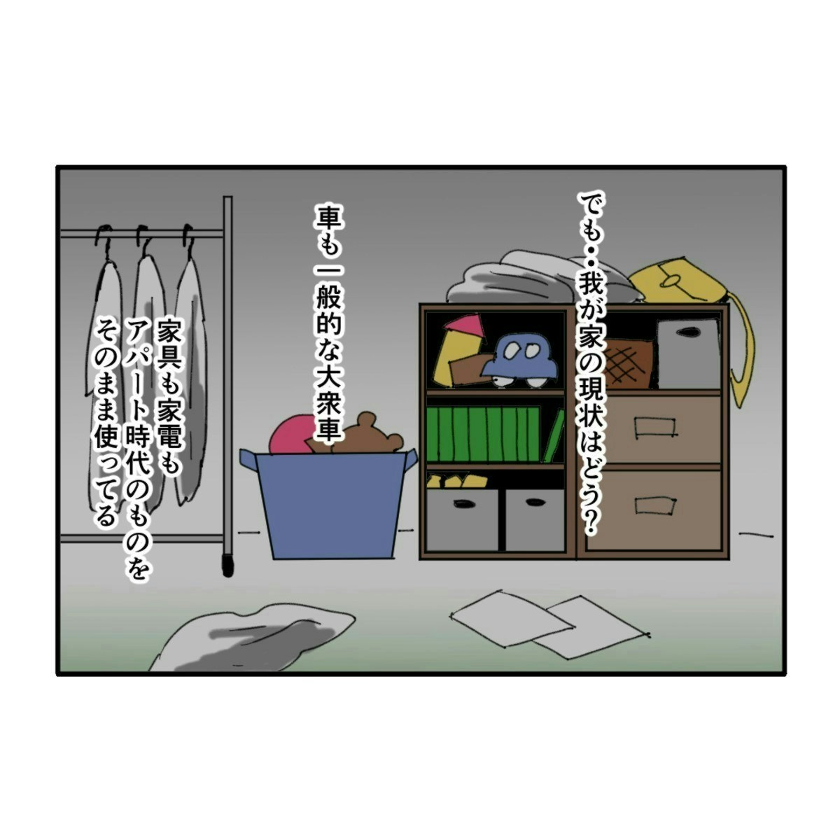 また、家を建てたばかりのハルミさん家族ですが、周りの人たちが乗っている車を見て「うちもこの住宅地に住むにふさわしい車を買わねば」と焦っています。夫は乗り気ではありませんが、ハルミさんの勢いに押され気味。こうした時に、夫婦で冷静に自分たちの経済状況と家庭の方針を話せると「自分たちが本当にどうしたいのか」が分かるのかもしれませんね。
