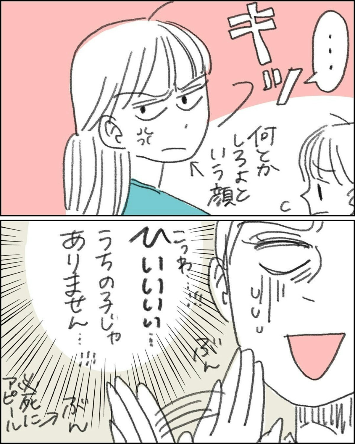 おもちゃを横取りされた子のママは、なこさんを男の子の親だとかんちがいした様子。イラッとした表情でにらんできました。