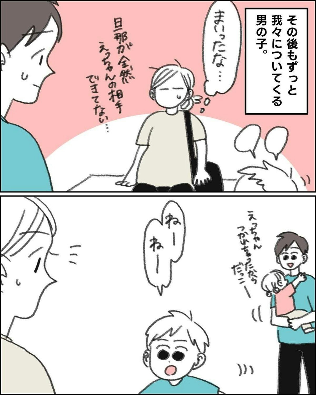 親に放置されているように見える男の子になつかれた、なこさん一家。困惑しながらも、その寂しそうな様子が気になってしまいます。