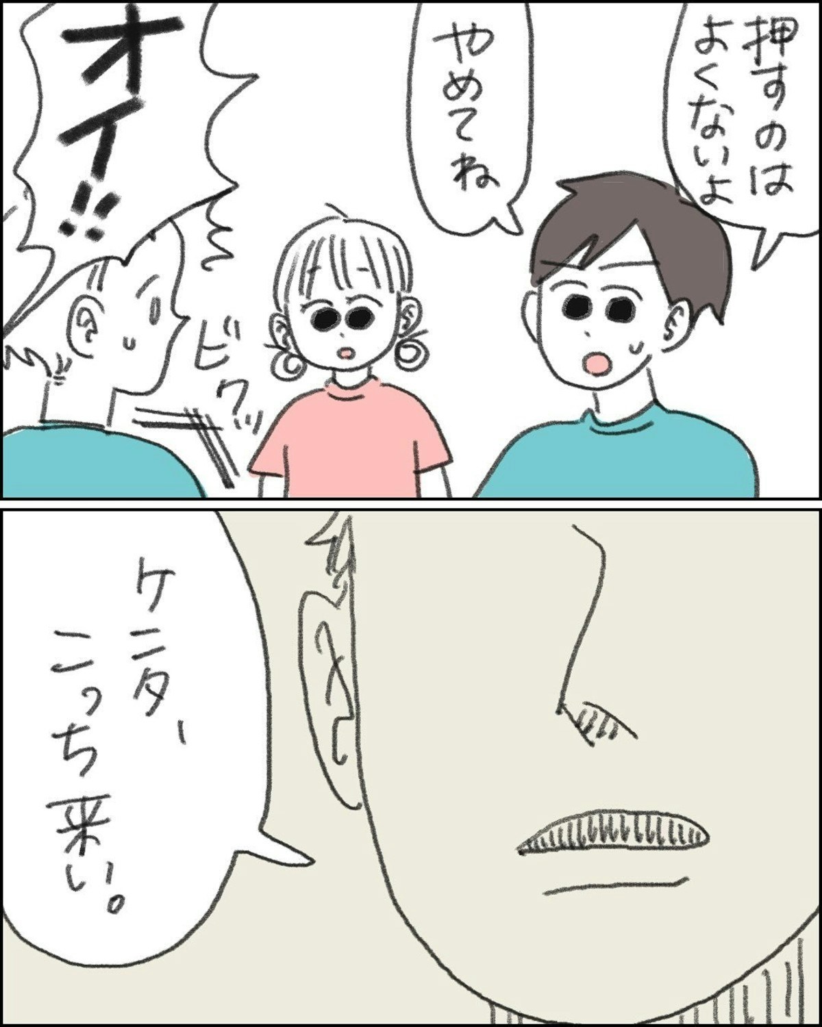 すると、その様子を見ていたのか…男の子をどなる大きな声が…。父親でしょうか。男の子はビクッと肩をふるわせ、おびえているようです。