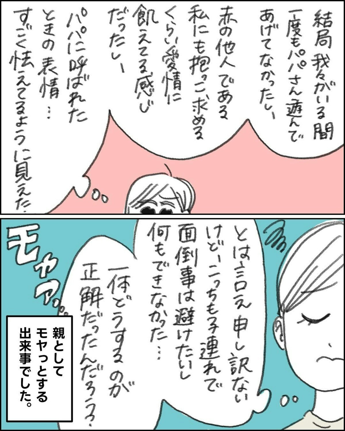 親として、そして、ひとりの大人として、周囲の子どもにどう関わるべきか、深く考えさせられるエピソードですね。