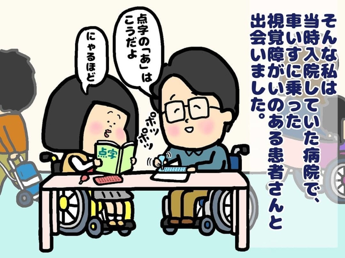 入院先の病院で出会ったのは、視覚障害のある男性でした。その男性は、主人公に自分の夢を語ってくれました。