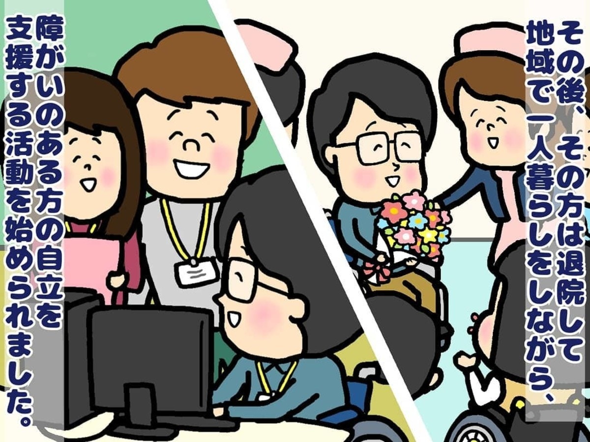 視覚障害のある男性は、退院後に自らの道を切り開き、社会で活躍する姿を見せてくれました。その姿に強く心を動かされた主人公は、「自分も誰かに希望を届けられるような生き方がしたい」と思うようになり、将来について具体的に考え始めました。