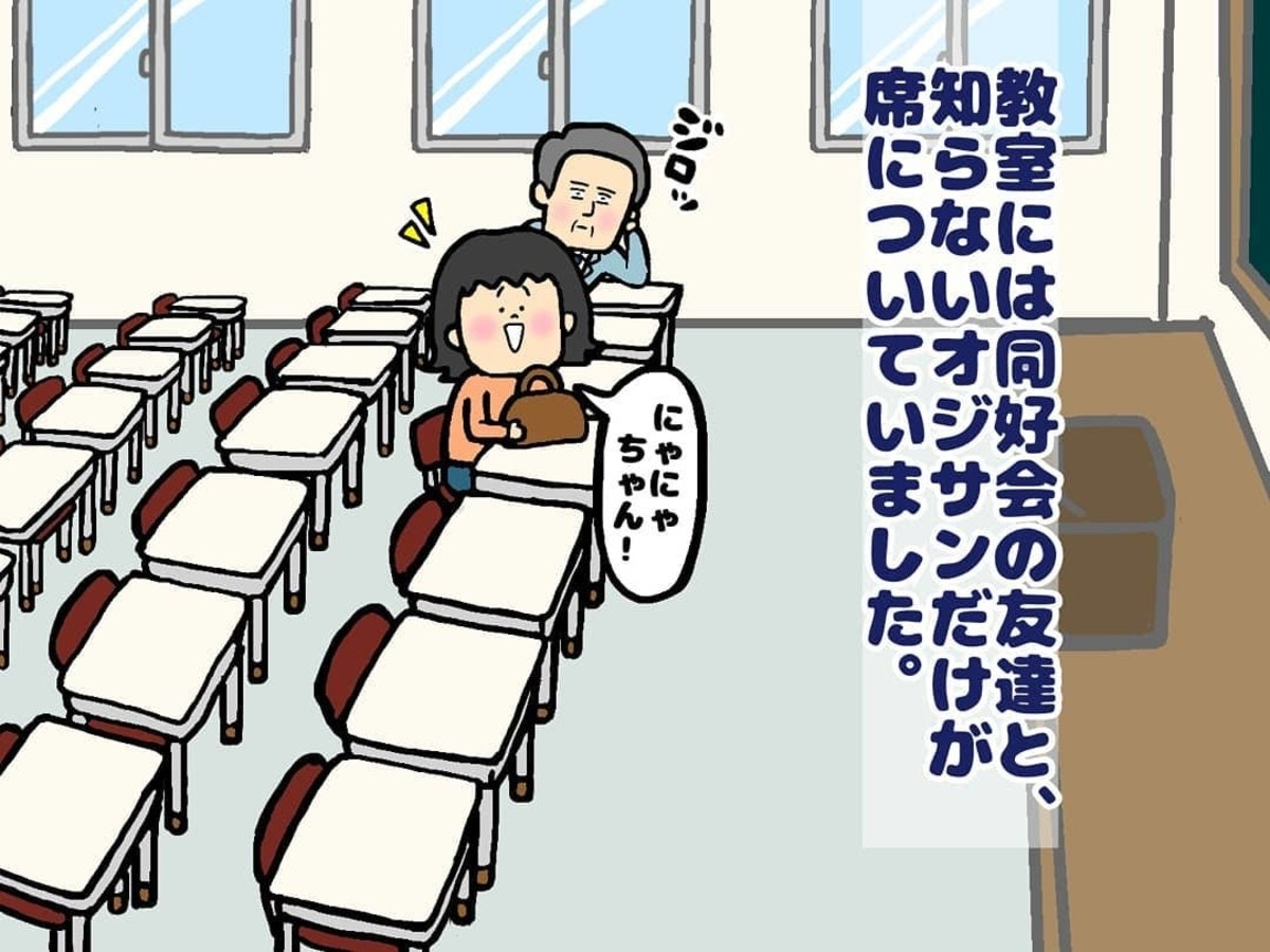 教室に着くと、中には同好会の友人と、見知らぬ年配の先生がひとり座っていました。