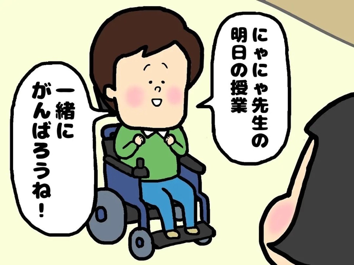 生徒からかけられた「明日の授業、一緒に頑張ろうね」という言葉に、胸を打たれた主人公。自分が特別支援学校の先生になりたいと思った原点を改めて思い出しました。