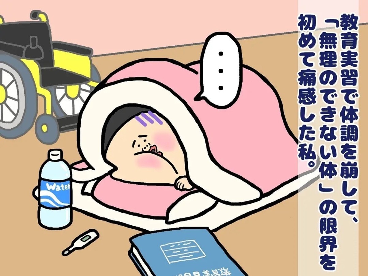 医師から「人の3倍は疲れやすい体」と言われていた主人公。教育実習をやり遂げた達成感の裏で、その言葉の意味を身をもって知ることになりました。