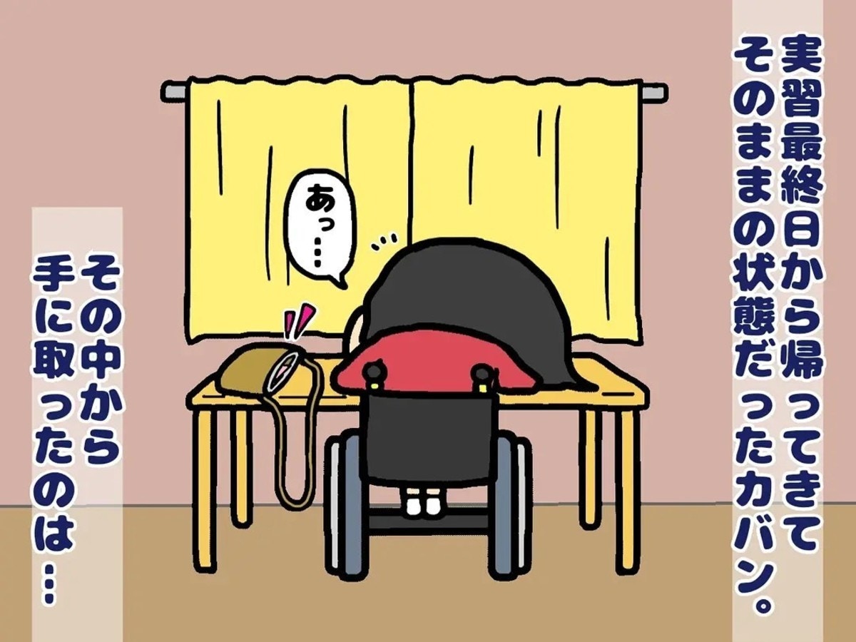 実習の翌日に倒れた主人公は、ずっとそのままになっていたカバンの中から、生徒からもらった手紙を取り出しました。