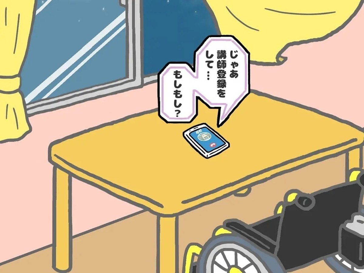 特別支援学校での教育実習を終えた翌日、突然体調を崩した主人公。人一倍疲れやすく無理のできない体であることを痛感しながらも、「それでも教員になりたい」という夢を改めて胸に刻みます。そんなある日、主人公のもとに一本の電話がかかってきました。