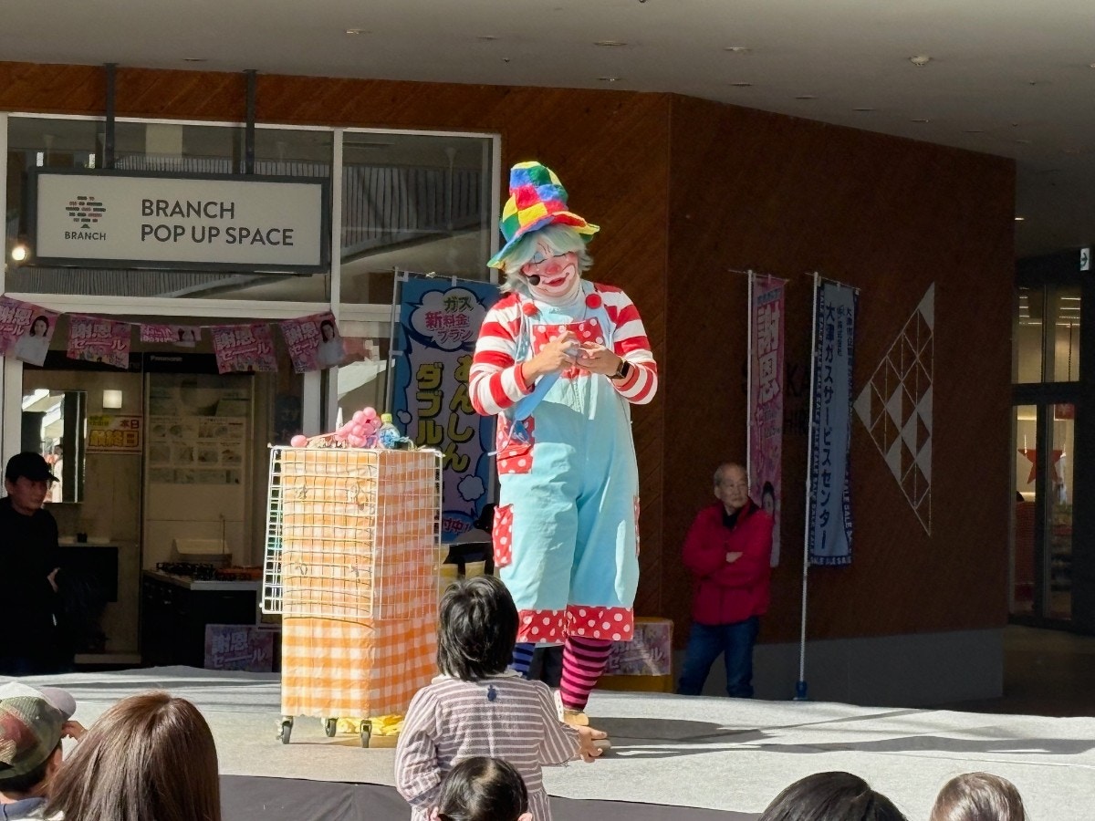 今回のステージでは、大津市キャラクター「 おおつ光ル」くんのバルーンやや家事育児にまつわるフォークやお掃除用具のバルーン制作パフォーマンスが行われました。