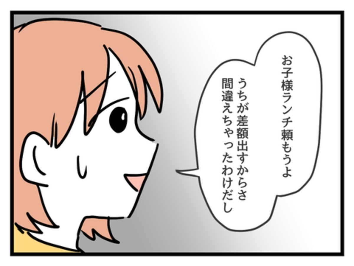 お子様ランチを注文した はるかの娘は大喜び。一方で、注文しなかった りさの娘は、やはり不機嫌に…。さらに、りさの一言は信じられないものでした。子どもの前で、責任を押しつけられてしまうなんて。誰だって、間違いはありますよね。