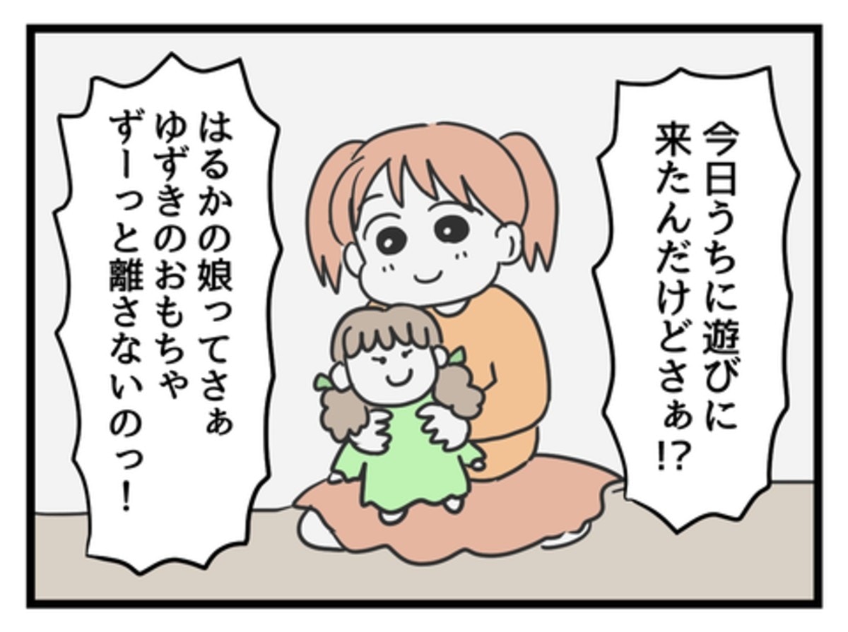りさのお宅にお邪魔した直後、はるかは価値観の違いをはっきりと感じます。せっかく近所に友だちが引っ越ししてきて喜んでいましたが、金銭的な価値観などがことごとく合わず、友人との楽しい育児ライフは束の間の夢で終わってしまいました。