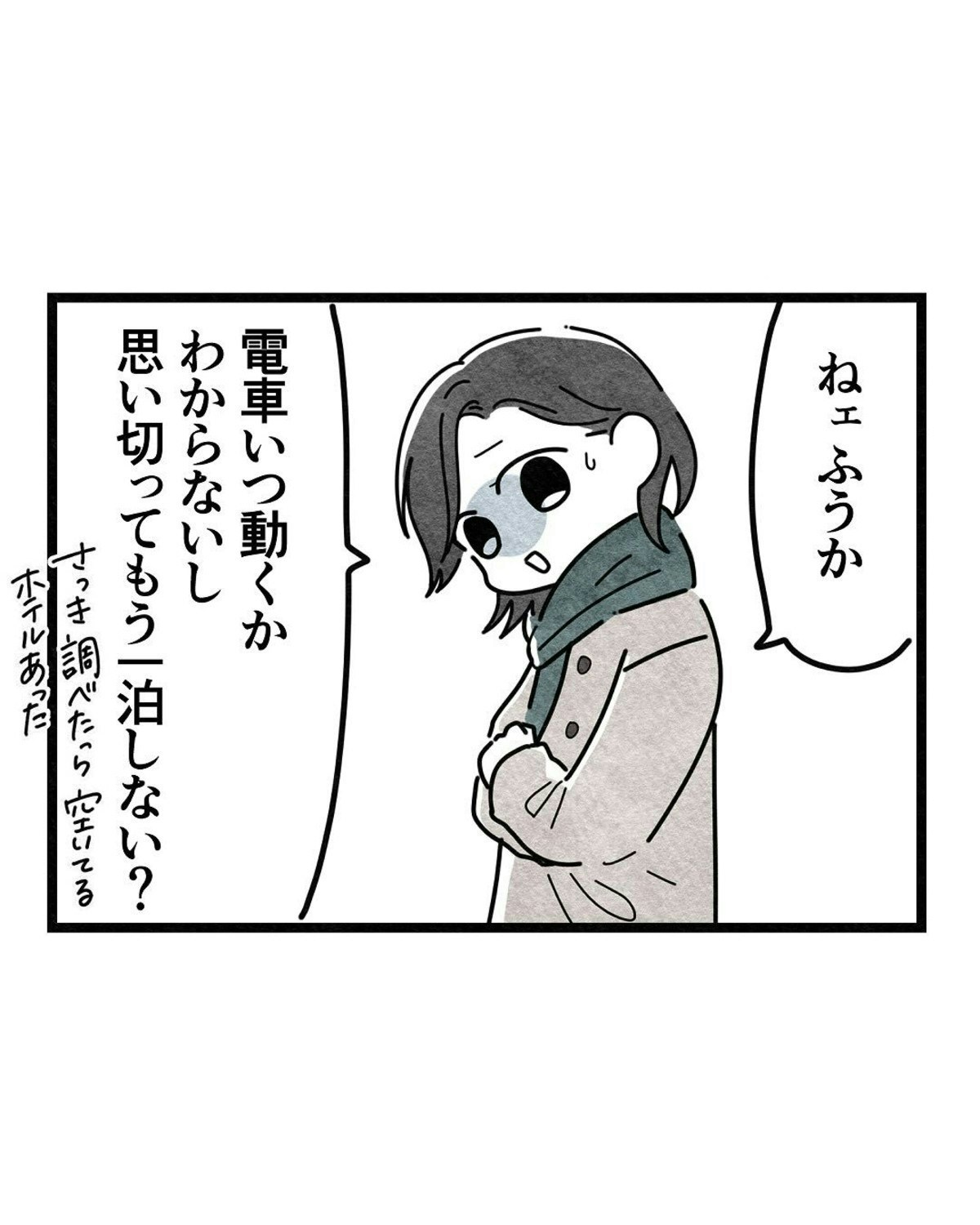 友人の結婚式の帰り、電車のトラブルで足止めされてしまいました。2時間、寒いホームで並びますが、一向に運転が再開する気配はありません。他のお客さんも、諦める人がチラホラ。さらに、さほは生理痛で体調が優れません。
