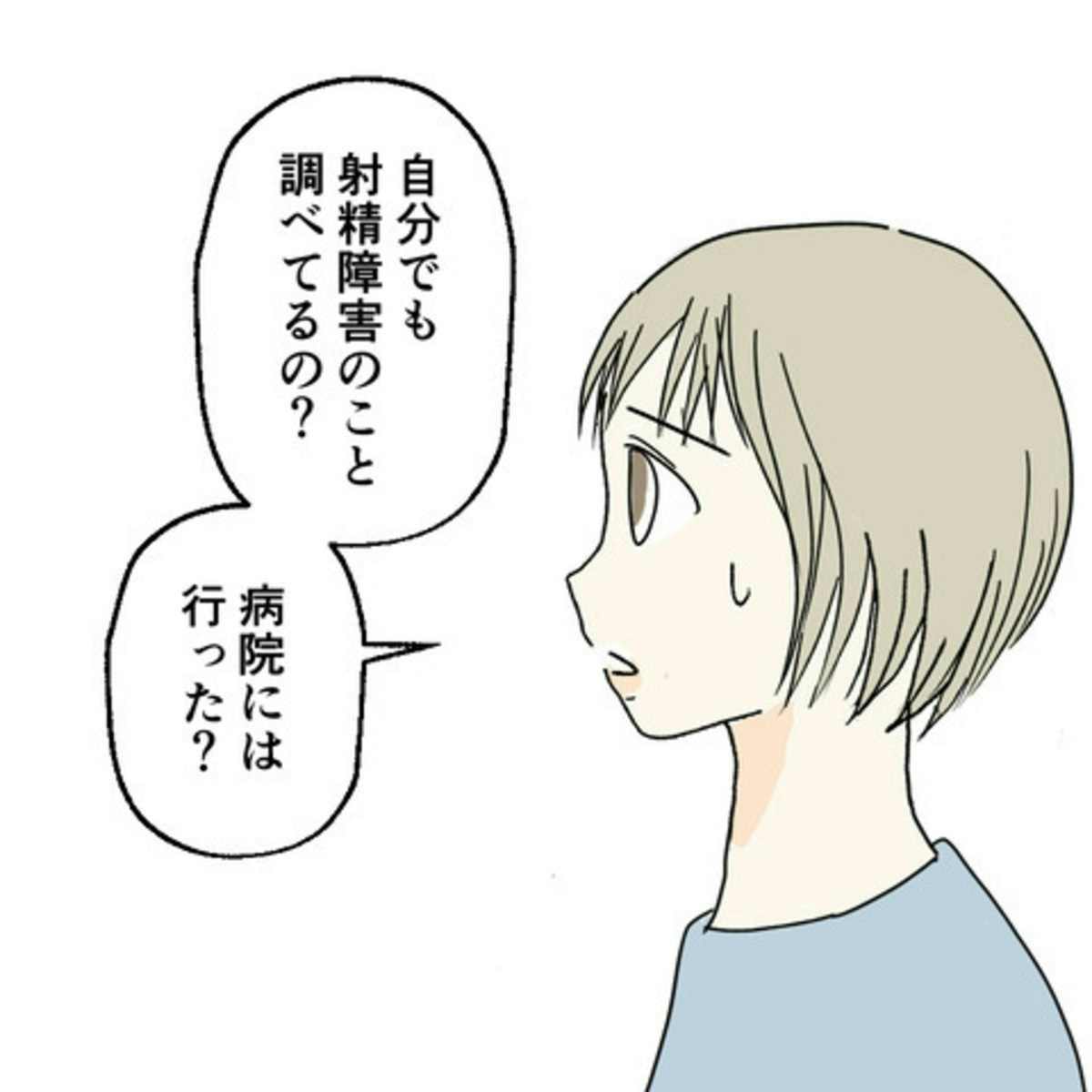 S葉さんは、友人に相談し、「もしかしたら彼は膣内射精障害かも」と予想していました。治療するためには、専門医を受診するのが適切ですが、本人にはその気がないようです…。