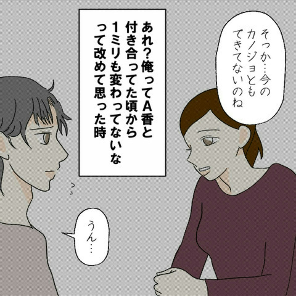 E原さんは「出張」とウソをつき、S葉と距離を置いていました。その間、E原さんは偶然、元カノ・A香と再会。A香は、E原さんの性の悩みを理解し、セックスを求めない女性でした。E原さんは今までA香に甘え、改善しようと努力したことがなかったことに気づきます。