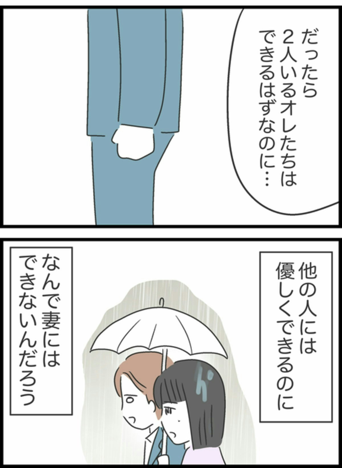 本作では、まったく家事育児をしない夫に悩み、「離婚」まで考えた夫婦の様子が描かれています。夫は「自分は仕事をしているから」と考え、妻の大変さをまったく理解しようとしませんでした。