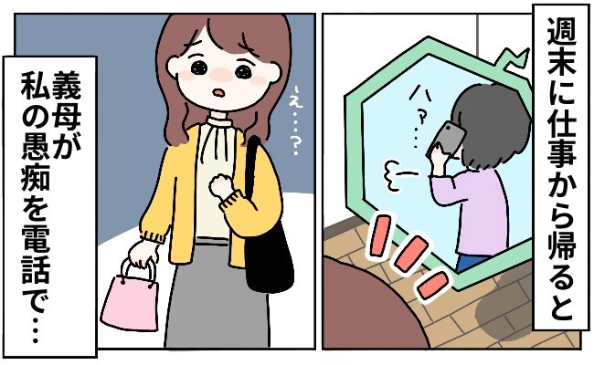 数か月に一度の美容室でのリフレッシュのため義母に子どもを預けたえりな。予定より早く帰宅した際、義母が義父に電話をしている声を聞いてしまう。頑張りを否定するような発言を聞いてしまい、えりなの心は完全に折れて…。