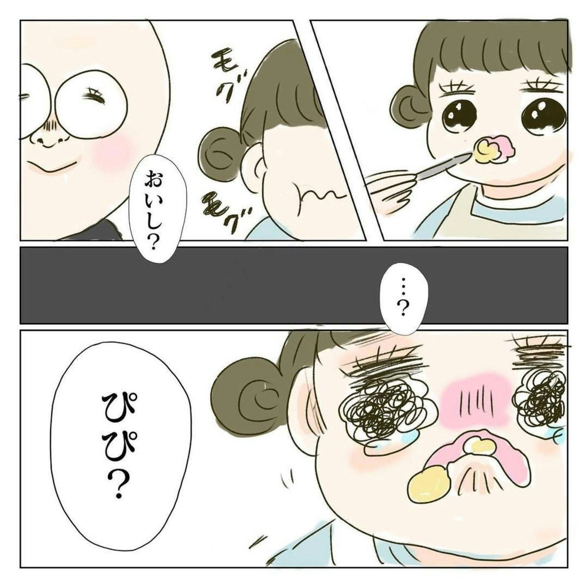 教室に戻った剥がれ鱗さんは、ぴぴちゃんに給食を食べさせました。しかし、ぴぴちゃんは大好きなお芋を口にしても、泣き叫ぶことをやめません。その様子を見て、剥がれ鱗さんもどう対応すればよいのか分からず、困り果ててしまいました。