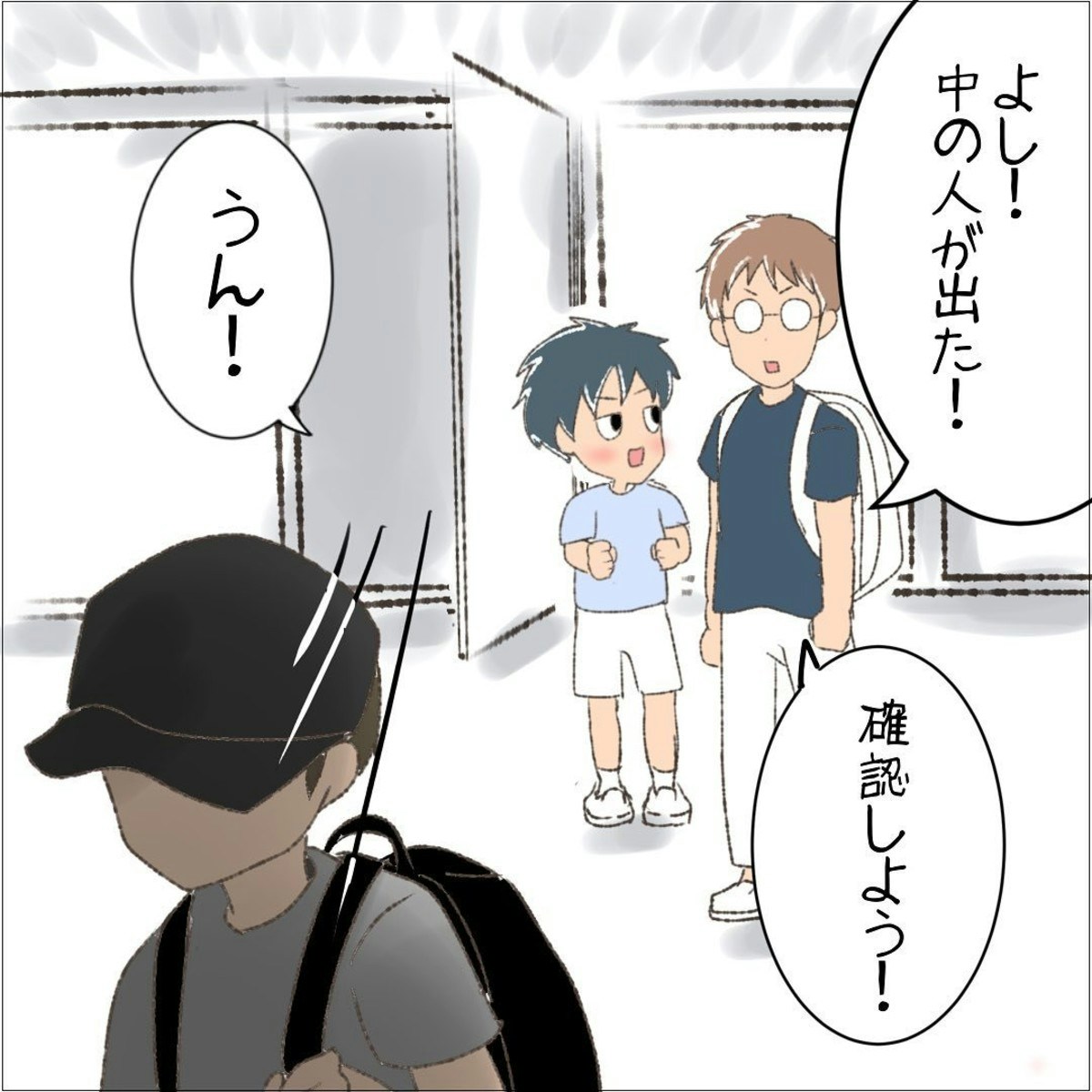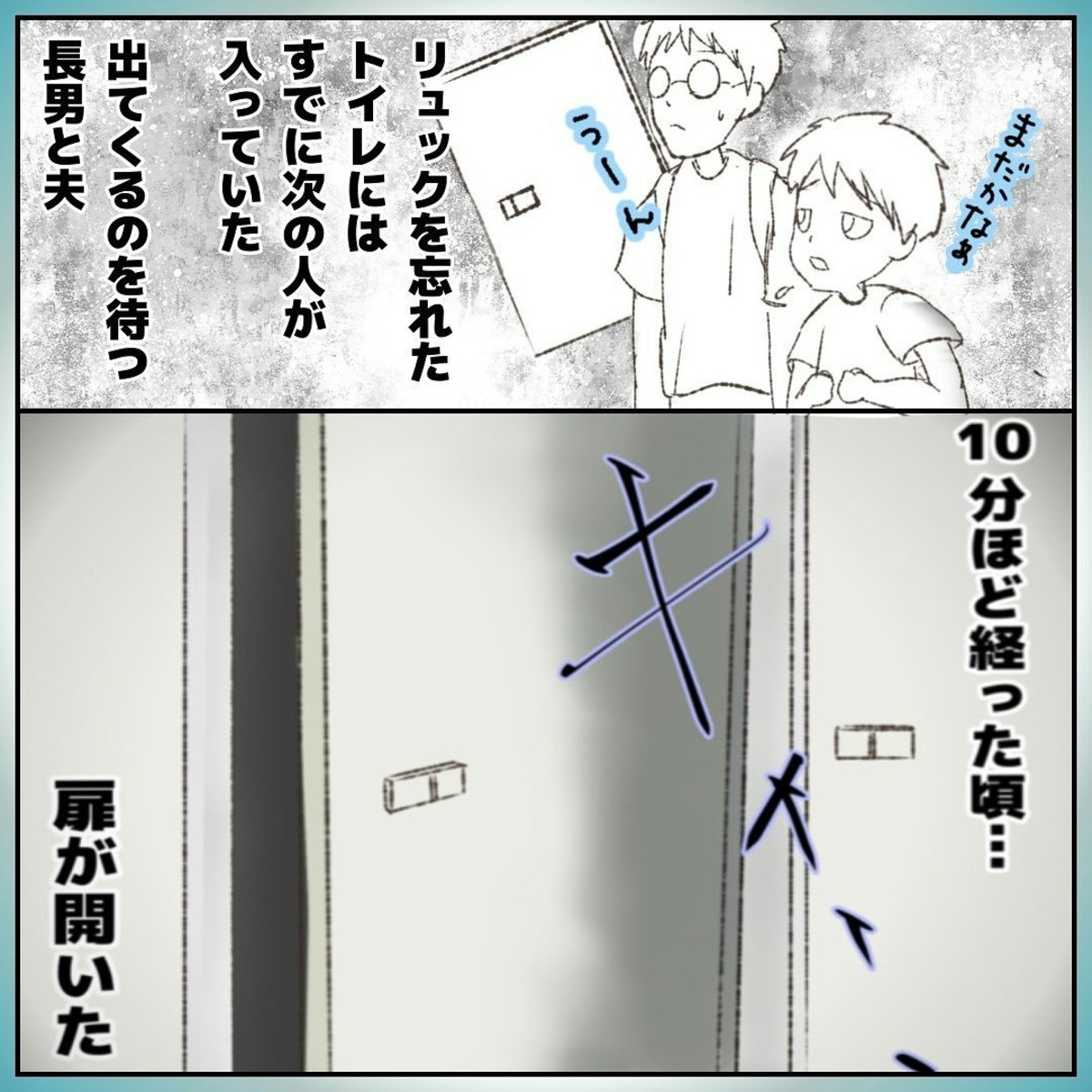 にいくんとパパは、トイレの中に入っている人が出てくるまで、10分ほど待ち続けました。