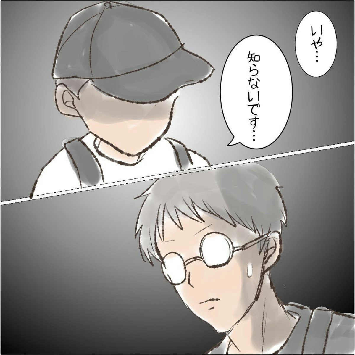 パパが「リュック知らない?」と尋ねると、少年は「知りません…」と答えました。