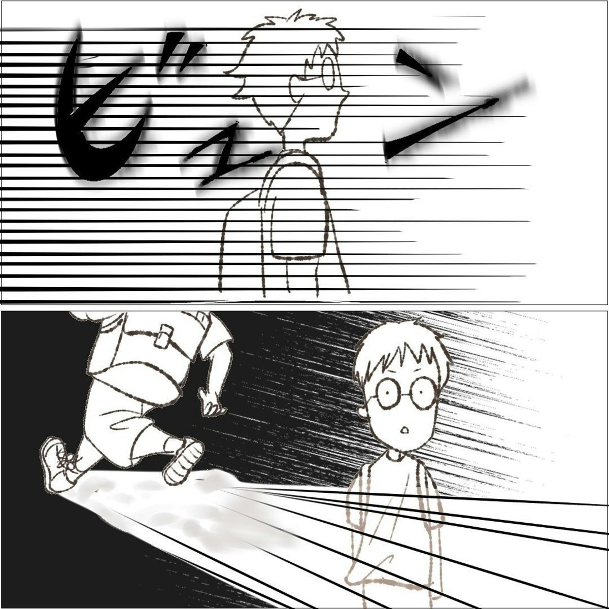 パパは少年が知らないふりをしているのではないかと疑いました。すると突然、少年が走り出しました。