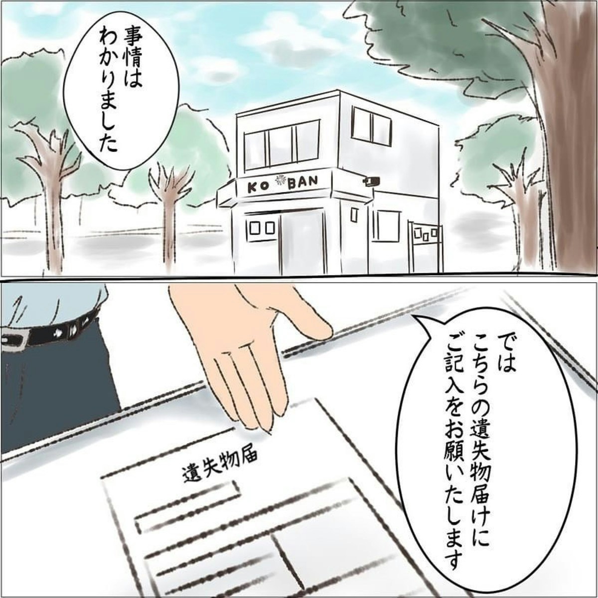交番では、遺失物届けの記入をお願いされました。パパは被害届を出せないかと尋ねましたが、それは難しいと説明されました。