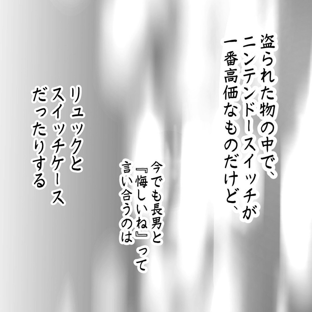 盗まれた物の中で、最も高価だったのはSwitchでした。しかし、にいくんにとっては、祖父母からもらったリュックや、イベントで買ったケースを失ったことの方が、より悔しかったようです。結局、盗まれた物は警察に届けられることはありませんでした。