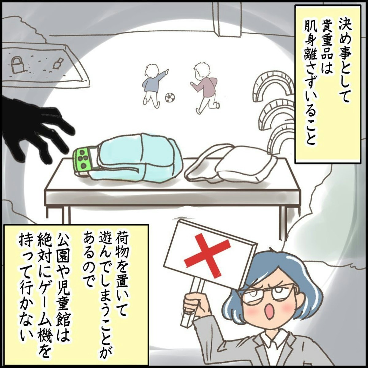 おはぎさん親子は、今回の出来事をきっかけに、「お出かけの際にトイレに行くときは、必ず親に荷物を預ける」や、「公園や児童館に行くときは、ゲーム機を持っていかない」といった新しいルールを決めました。私たちも、普段から親子で防犯意識を高めたり、いざというときのためのルールを一緒に考えたりすることが大切ですね。