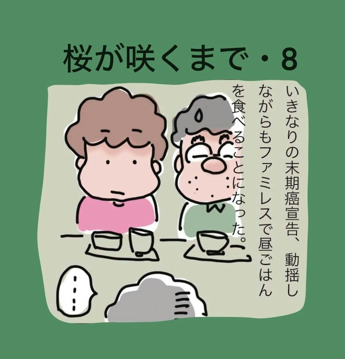 末期癌と診断された後、おかんさんと息子、そして母親の3人でファミリーレストランに行き、お昼ご飯を食べました。