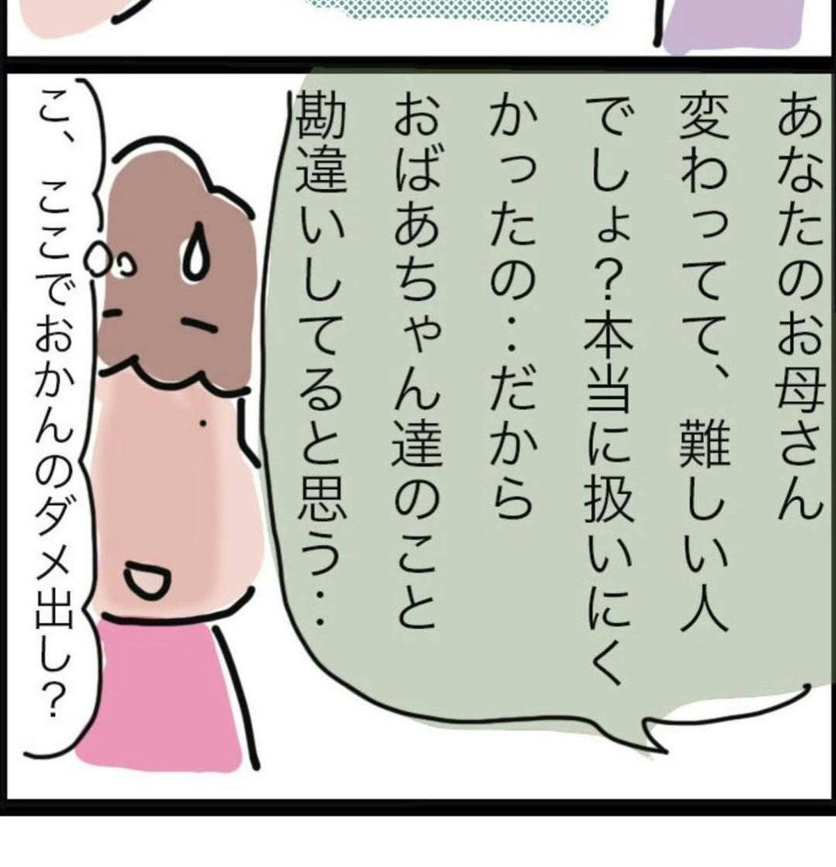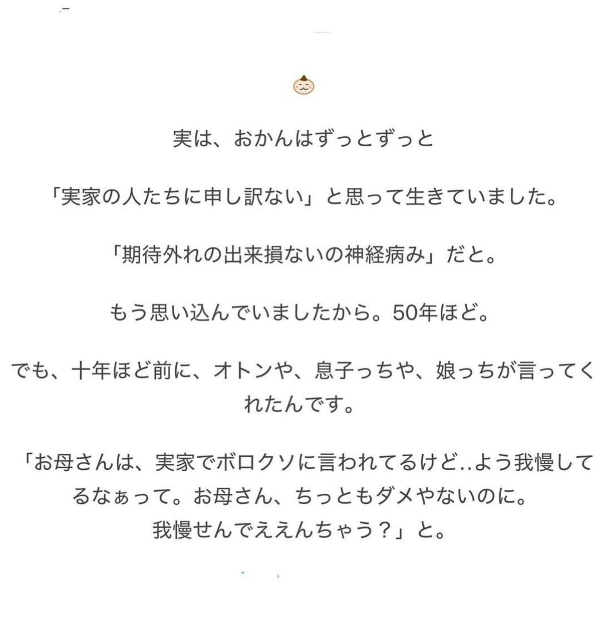 母親は期がんと宣告された後、おかんさんの息子に向かって、おかんさんがどれほど育てるのが大変な子だったかを語り始めました。そのとき、おかんさんには言い返したいこともありましたが、何も言わず、ただ黙って話を聞いていました。