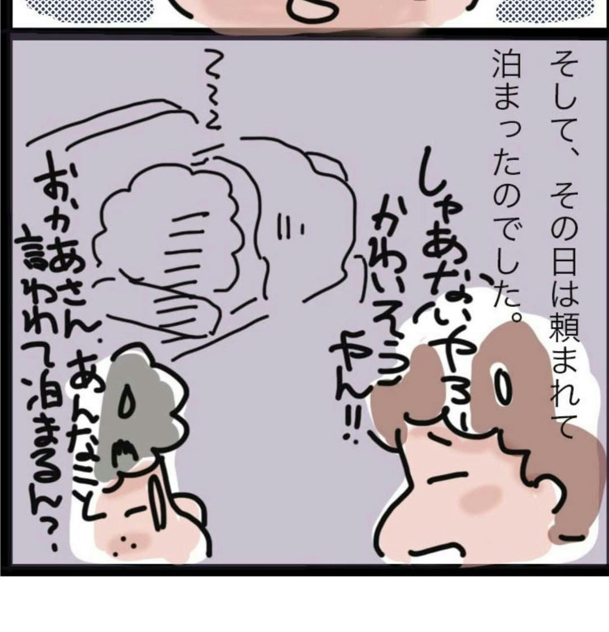 食事の場で、母親は突然おかんさんの息子に向かい、おかんさんが子どものころ、どれほど手のかかる子だったかを話し始めました。