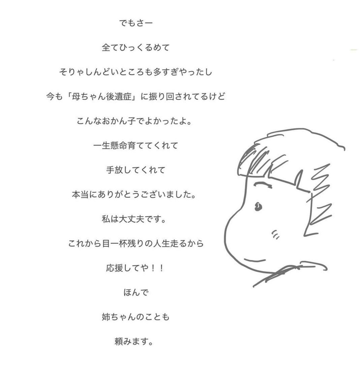 おかんさんは、母親との関係に長い間悩み続けてきました。母親が亡くなったあとも、その影響は残りましたが、それでも自分の人生を前向きに歩いていくことを決意しました。
