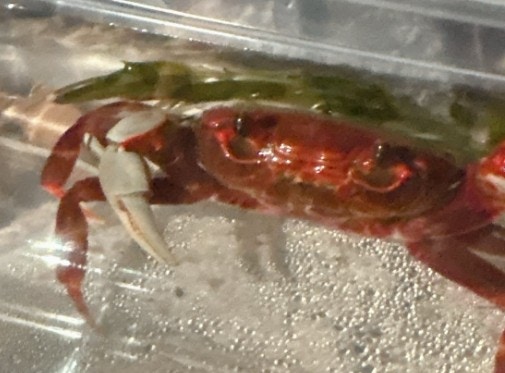 まるで自分はカニだとわかっているかのように、片方のハサミを突き上げて応答しています。よ!と声が聞こえてくるようでかわいらしいです。カニも表情豊かなんだなあ…と感じました。一緒に過ごすうちに、さまざまな表情が見られるようになるのかもしれませんね。