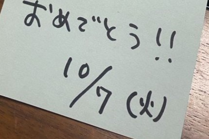 投稿者・鈴木何某(@nanigashisuzuki)さんは教習所に通っており、ある日奥さんが仮免許合格のお祝いをしてくれたそう。メッセージに書かれた「仮面おめでとう」に爆笑の鈴木さんですが、訳がありそうで…?コメント欄も大喜利などで盛り上がっていました。