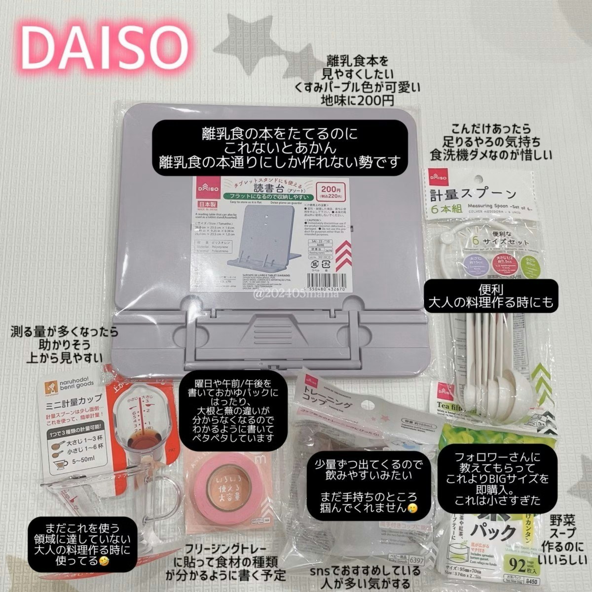 misu🎀8m(@202405mama)さんの投稿です。離乳食は、細かく切る・こす・潰すなどの工程が多く、結構手間がかかるものです。育児は他にもやることがたくさんあるので、できるだけ手間を省きたいですよね。そんなときに便利なのが離乳食の便利グッズ。ダイソーやセリアにも、お手ごろ価格でさまざまな離乳食用の便利グッズが販売されています。ただ、お手ごろ価格でも本当に必要なものばかりではないようです。