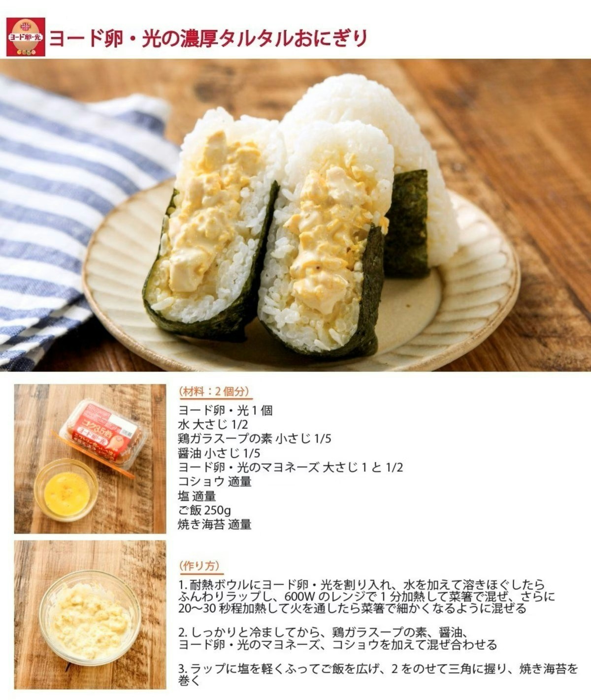 よだれ出る…!ヨード卵・光公式のレシピが話題【濃厚タルタルおにぎり】4千いいね