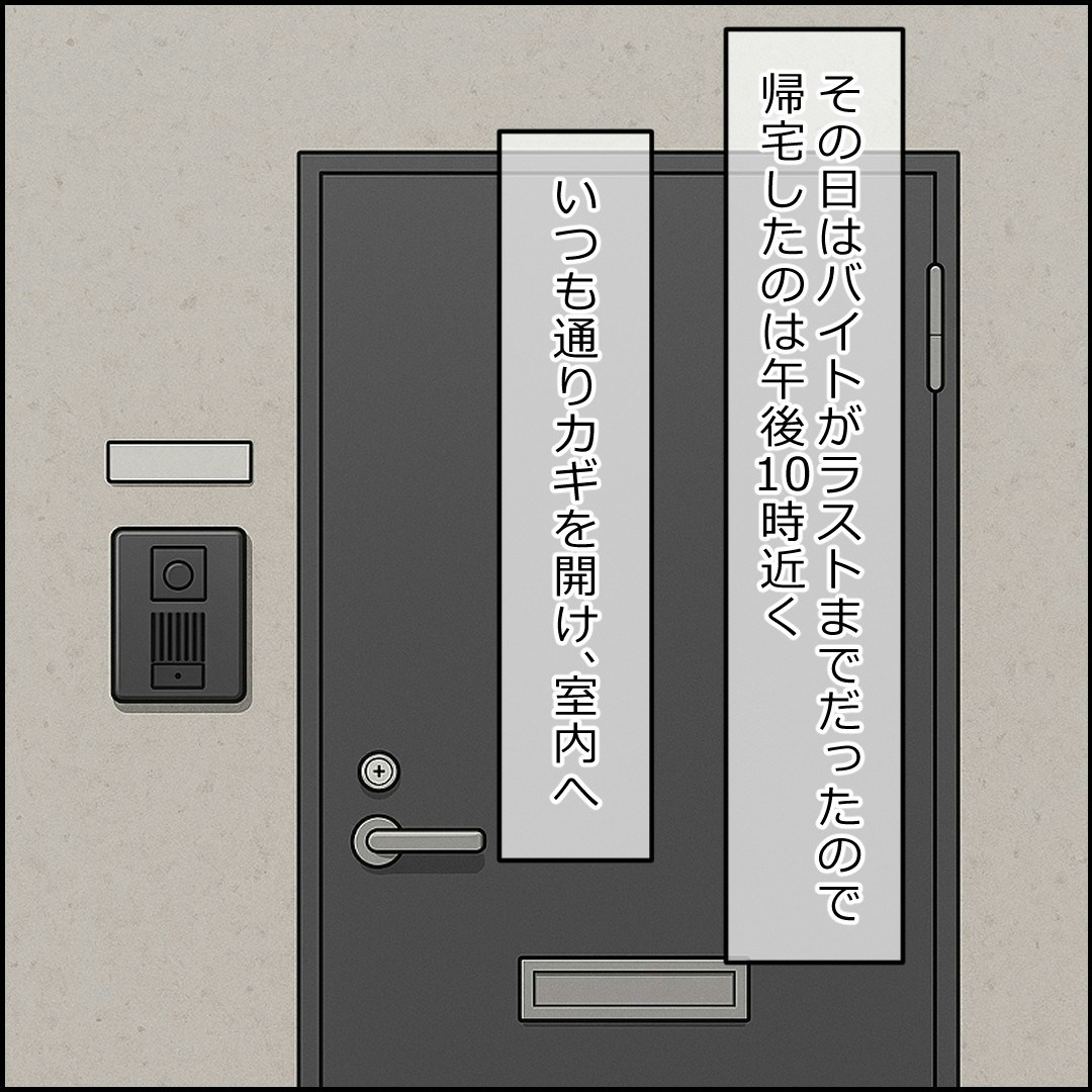 遅くまでアルバイトに精を出し、午後10時近くに帰宅後、部屋にある異変を感じます。