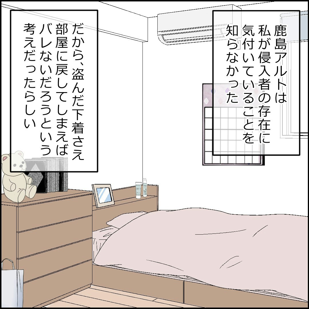 1年にもおよび侵入をくり返していたアルトは、レイが侵入に気付いているとは思っていなかったようです。店長から「レイが下着泥棒にあった」と聞き、あわてて下着を返しに来たところを御用となりました。