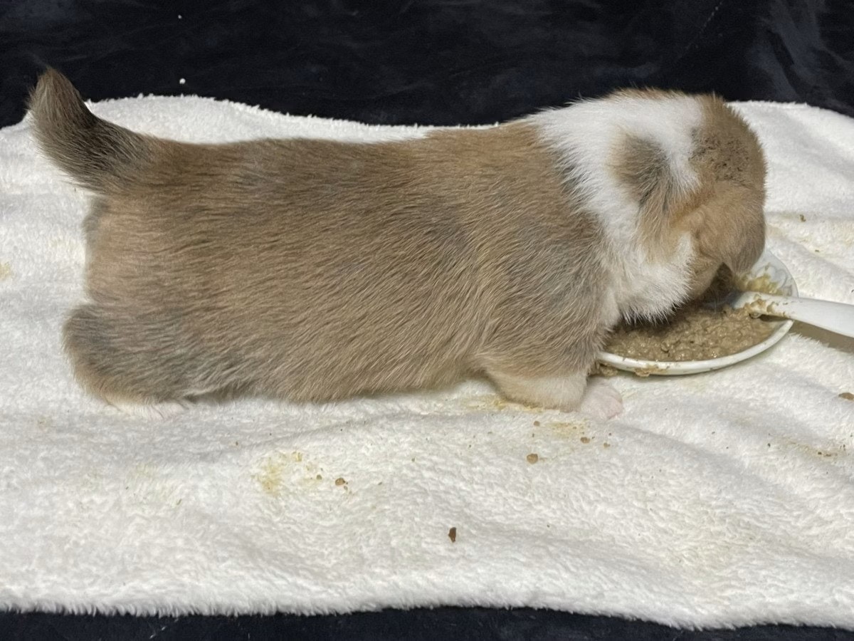 投稿者・ウェルスターレッドコーギー犬舎さんは、家庭犬訓練所が営むペンブロークコーギー専門犬舎。今回は、元気にごはんを食べる子犬の様子を投稿してくれました。どうぞ癒やされてください。