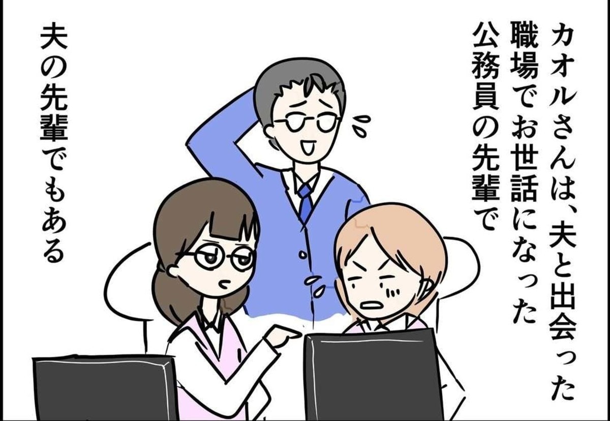 主人公の佳奈はある都市で非常勤の公務員として働いていました。その職場では、のちに佳奈の夫になる男性に出会います。いつもさりげなく仕事のフォローをしてくれる彼から食事に誘われたことをきっかけに、その後交際に発展した2人。