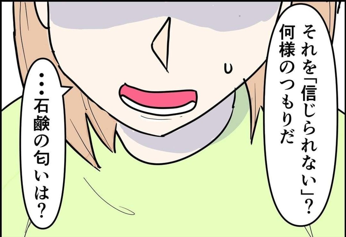 そして佳奈は浮気疑惑をいだく発端となった「帰宅が遅くなること」「石けんの匂いをつけて帰って来たこと」について夫を追及することにします。