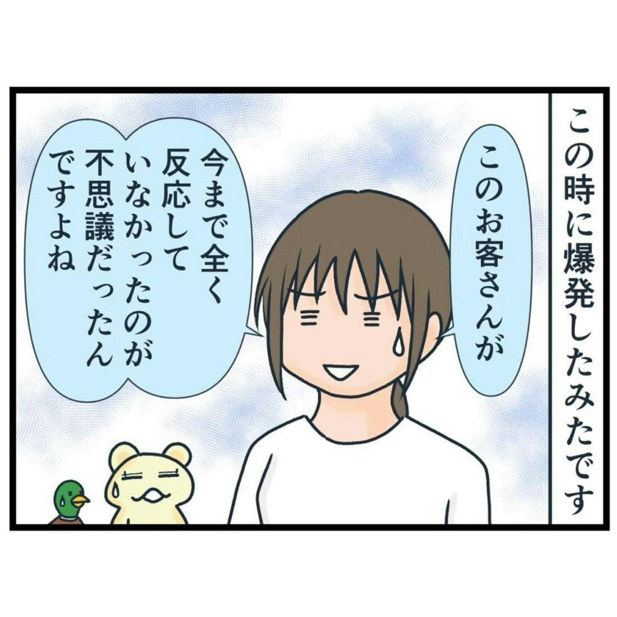 しかし問句さんの態度は次第にエスカレート。相手を睨んだり、じろじろと行動を見続けたりとやりたい放題です。そんな日が続いていた時、ついに新規のお客さんが問句さんに言い返す事態が勃発し…?