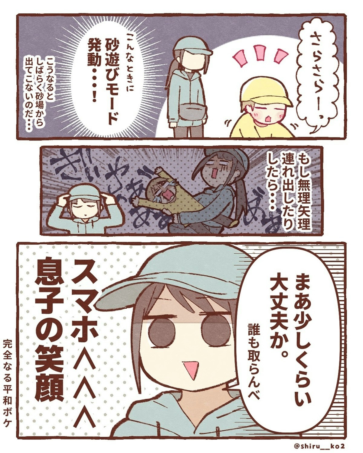 スマホを探すべく、ポコ太郎くんに「1回、家に帰ろう」と言った、しる子さん。ですが、楽しく遊んでいるポコ太郎くんを見て、しばらく遊びに付き合うことに。