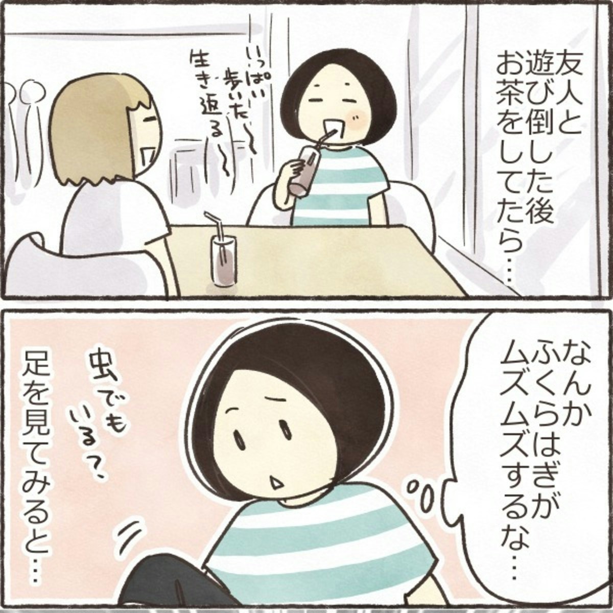 3年前に友人と楽しくお茶をしていたとき、ふとふくらはぎにムズムズとした違和感を覚えたきなこさん。何だろうと思い足を見てみます。