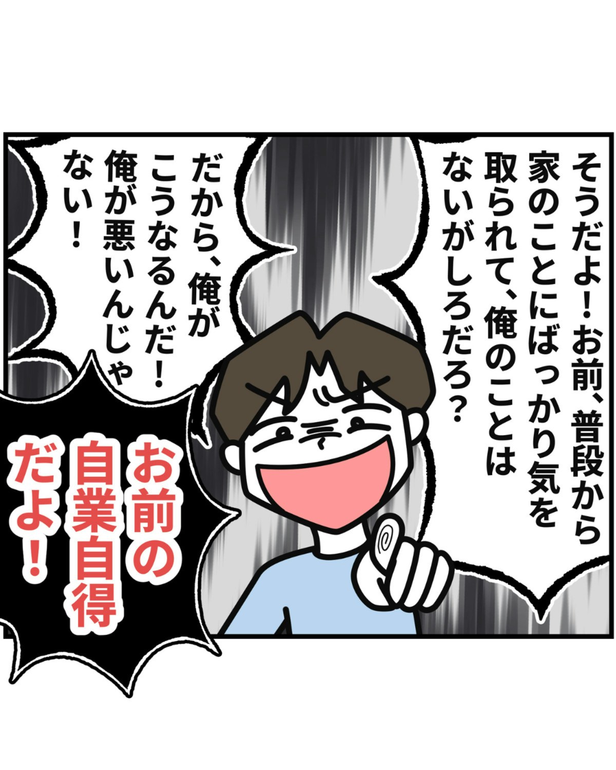 みゆきさんが夜遅くまで家事をしていたのは夫に言われたからでした。それなのに夫は、自分が風俗へ行く理由を作った「みゆきさんが悪い」と言い切りました。さらに「結婚してあげた」「養ってあげている」と言い始めます。