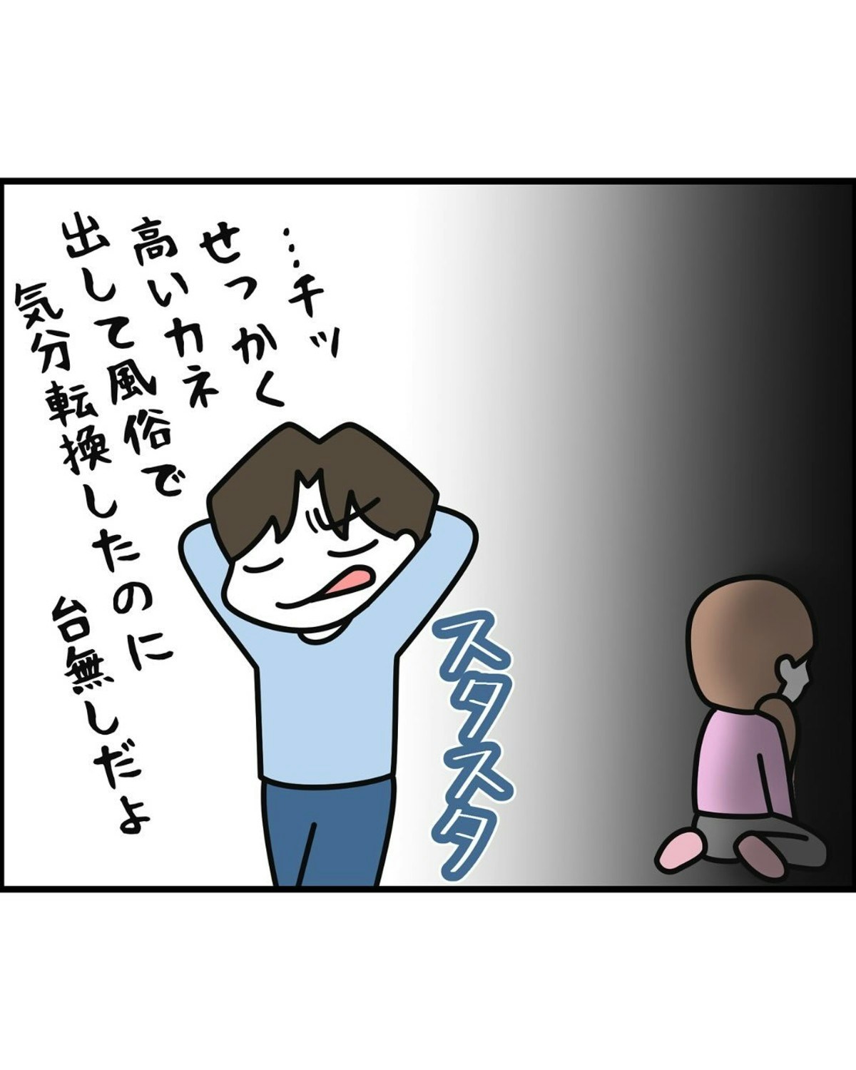 風俗へ行ったことがバレた夫は、泣いているみゆきさんに気分を悪くしてしまいました。夫からこんな扱いを受けたみゆきさんは、「もう無理だ」と夫への気持ちが薄れていることに気づきます。そして、夫にとって自分はいったい何なんだろうと考えはじめ…。