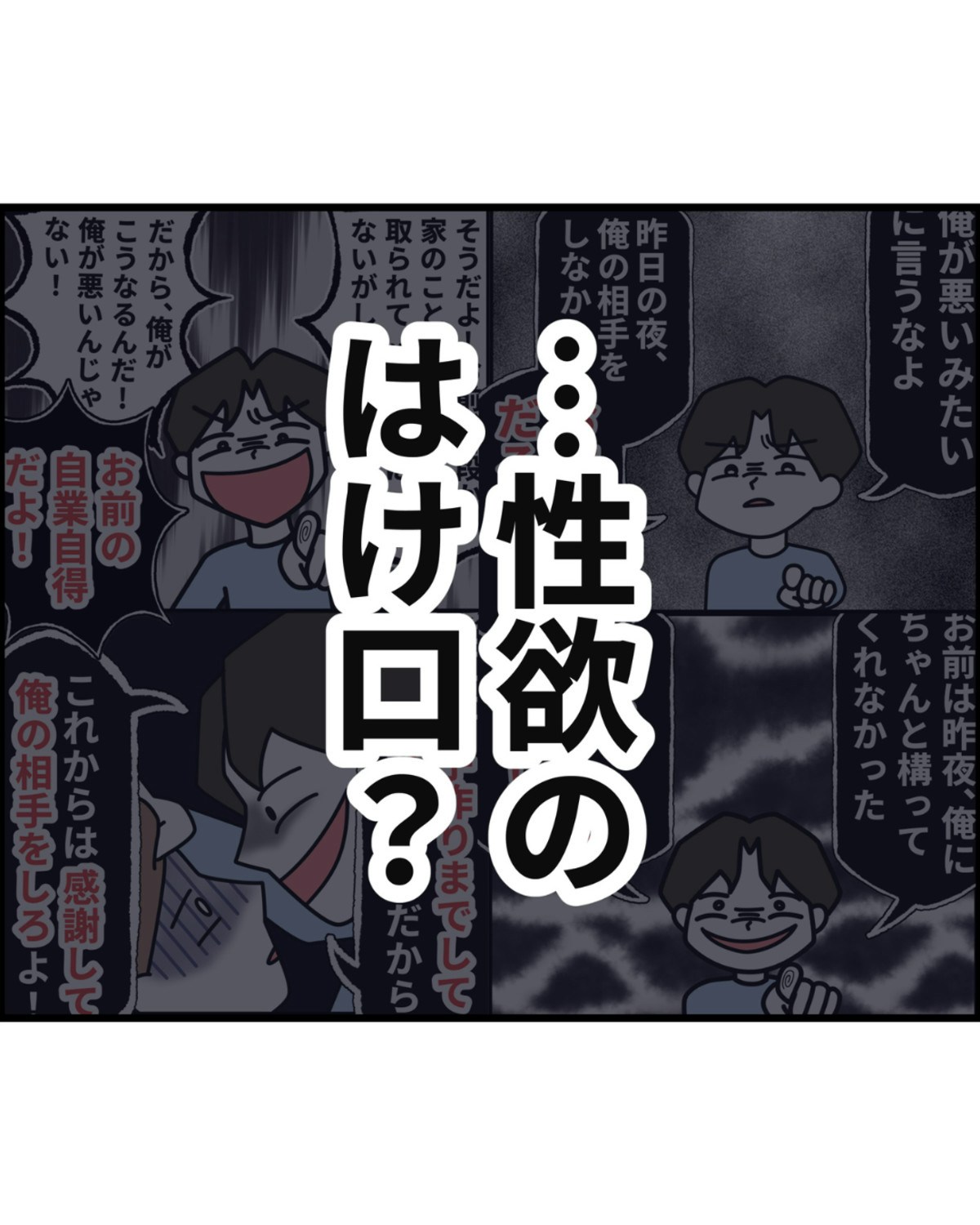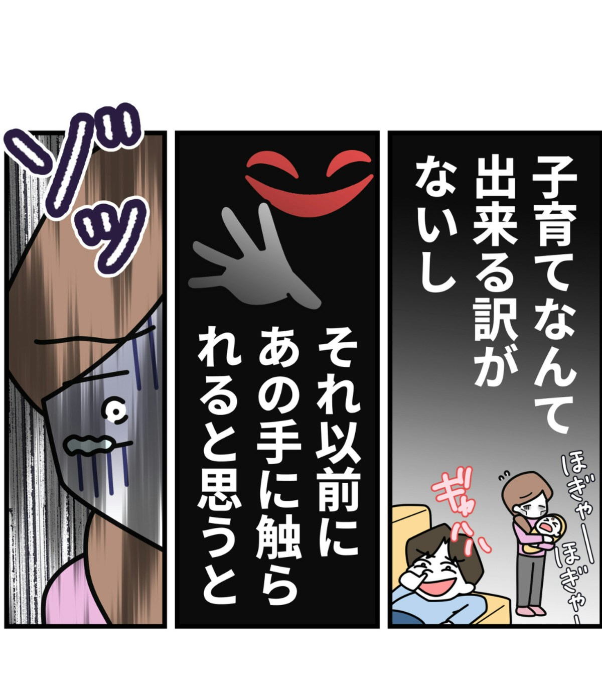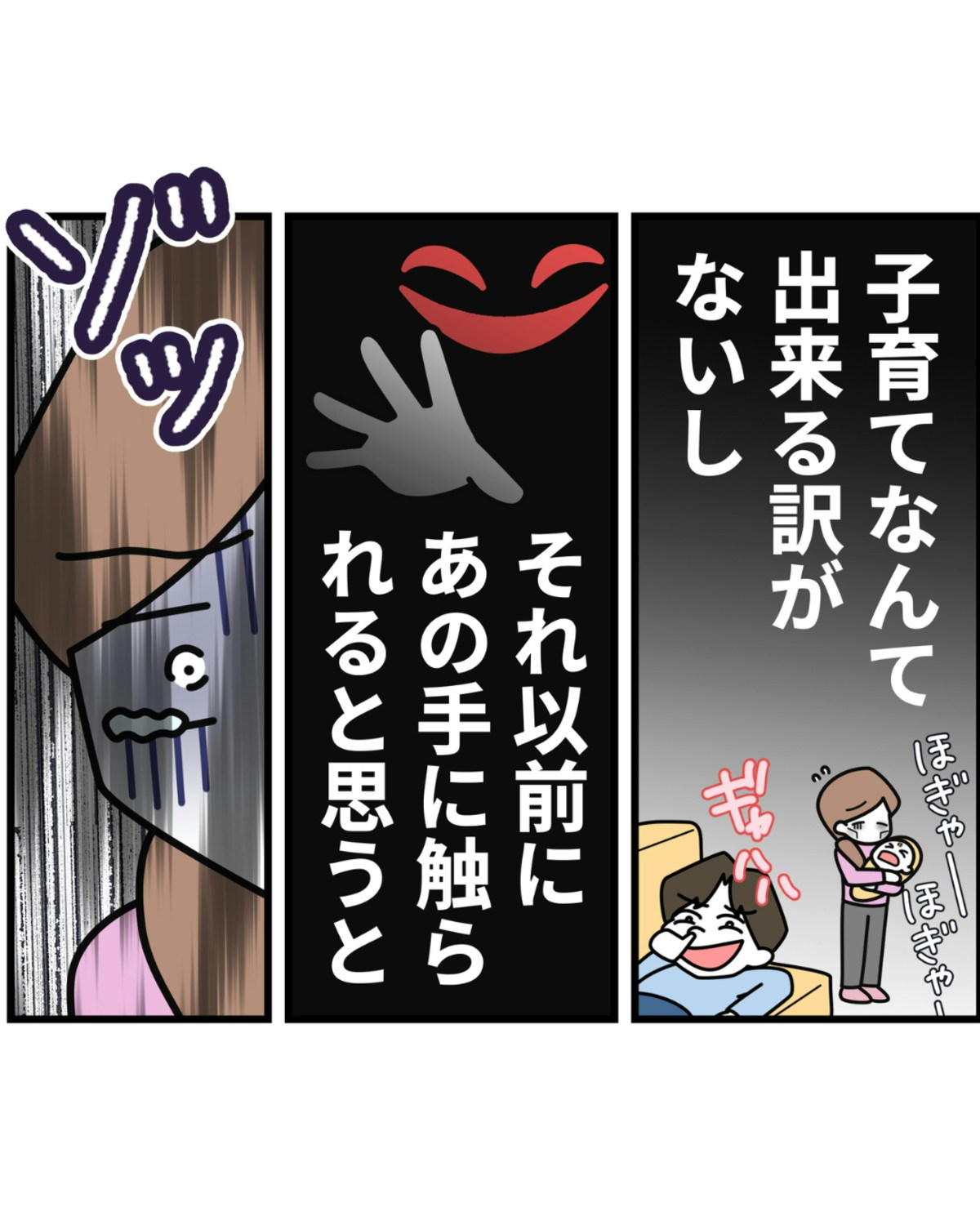 これまでの夫の言動を思い出して、自分は「性欲のはけ口」や、ストレス解消のための「サンドバッグ」だと感じてしまい怖くなったみゆきさん。そして、この先にもし子どもが生まれれても今の状況は変わらないのではないかという考えに行き着きます…。